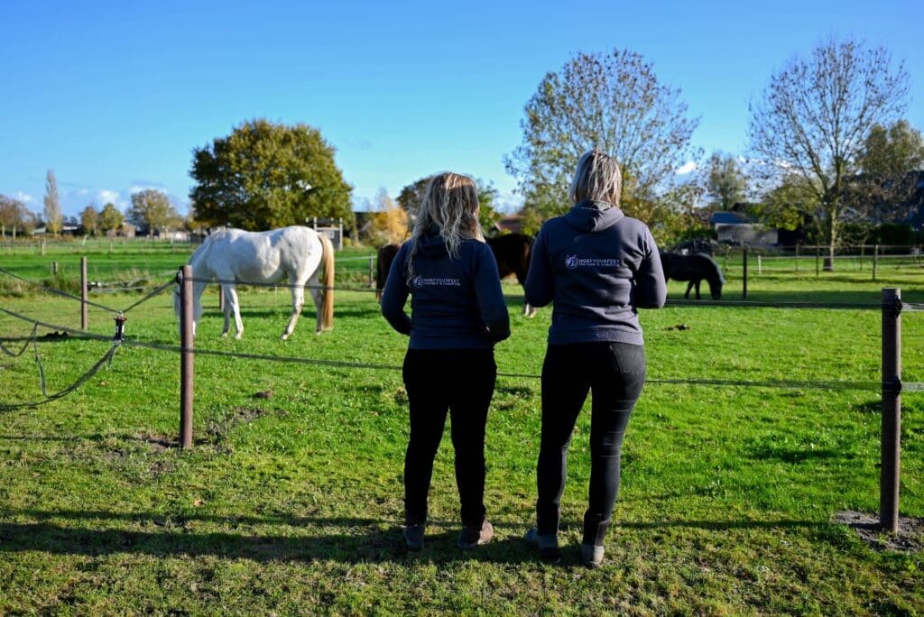 Niet ouderwets in een kamertje met twee stoelen; néé! Lekker in de veranda met zicht op paarden, in de bak tussen de paarden of wandelend naast een paard.